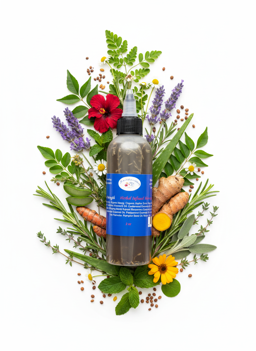 Helianthus annuus (Sunflower) Oil, Cocos nucifera (Coconut) Oil, Butyrospermum parkii (Shea Butter), Oryza sativa (Ricebran) Oil, Helianthus annuus (Organic Sunflower) Oil, Cannabis sativa (Organic Hemp) Seed Oil, Simmondsia Chinensis (Organic Jojoba Seed) Oil, Olea europaea (Olive) Oil, Vitis vinifera (Grape) Seed Oil, Glycine soja (Non-GMO Soybean) Oil, Tocopherol (d'Alpha Vitamin E) Oil, Vitginia Juniperus virginiana (Cedarwood) Essential Oil, Chamomilla rectita (Chamomile) Extract, Zingiber officinale (Ginger Root) Extract, Urtica dioica (Stinging Nettle) Extract, Rosmarinus officinalis (Rosermary) Essential Oil, Thymus vulgaris (Thyme) Extract, Lavandula angustifolia (Lavender) Essential Oil, Lecithin, Mentha piperita (Peppermint) Essential Oil, Melaleuca alternifolia (Tea Tree) Essential Oil, Serenoa Serrulata Fruit (Saw Palmetto) Extract, Cucurbita Pepo (Pumpkin Seed) Oil, Melia azadirachta Seed (Neem) Oil.